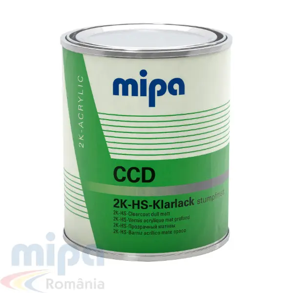 MIPA Lac Mat HS CCD este un lac acrilic 2K High Solid cu grad de luciu foarte redus (5–10 unități de luciu la 60°), dezvoltat special pentru finisaje mate uniforme pe lucrări parțiale sau complete de vopsitorie auto. Formularea High Solid permite un strat uscat de 50–60 µm și o acoperire ridicată (10–12 m²/l), asigurând eficiență și economie în atelier. Lacul se aplică pe vopsele de bază pe bază de solvent sau apă și oferă rezistență excelentă la intemperii, agenți chimici și uzură mecanică. Se amestecă cu întăritorii Mipa 2K‑MS sau 2K‑HS în raport 2:1 sau 3:1, iar pot life‑ul de aproximativ o oră la 20 °C permite o aplicare sigură și controlată.