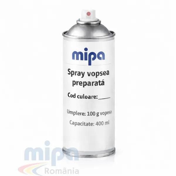 Spray vopsea auto la cod Mipa 1K Converter este o soluţie profesională pentru reparaţii rapide şi vopsiri parţiale ale caroseriei. Recipientul aerosol este preumplut cu gaz propulsor şi convertor, ceea ce permite încărcarea cu 100 g de vopsea 2K acrilică sau poliuretanică şi aplicarea ei ca un sistem 1K. Capul de pulverizare reglabil furnizează atomizare fină şi acoperire uniformă, iar întreaga cutie asigură o capacitate utilă de 400 ml. Este ideal pentru ateliere auto şi tinichigerii care doresc să reproducă exact nuanţa originală a vehiculului pe baza codului de culoare, fără a utiliza pistol de vopsit sau a prepara separat întăritorul. Păstrat în condiţii răcoroase şi uscate, aerosolul poate fi utilizat până la 24 luni şi respectă reglementările VOC (max. 840 g/l).