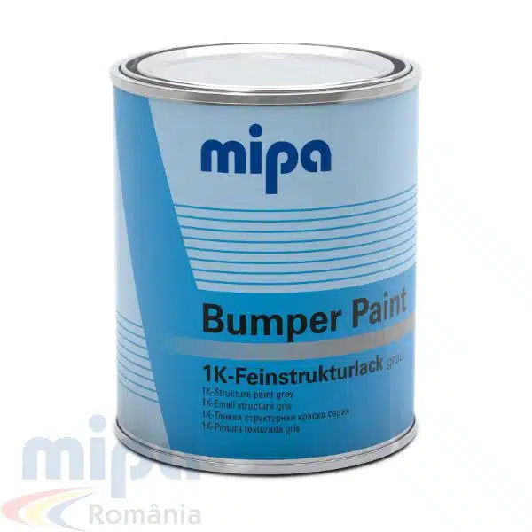 Mipa Bumper Paint este o vopsea texturata 1K destinata repararii si refinisarii barelor de protectie, bandourilor si oglinzilor exterioare fabricate din ABS, ABS‑PC, PP‑EPDM, PUR‑RIM, PUR sau PVC dur. Formula acrilica are aderenta directa pe plasticul pretrat, nu necesita primer separat si ofera un finisaj structurat care imita aspectul OEM. Rezista la temperaturi de pana la 70 °C, se usuca rapid (praf‑uscat in ~20 minute, gata de montaj in 24 ore) si ofera acoperire ridicata (7,7–8,2 m²/l), fiind ideala pentru atelierele de vopsitorie auto.